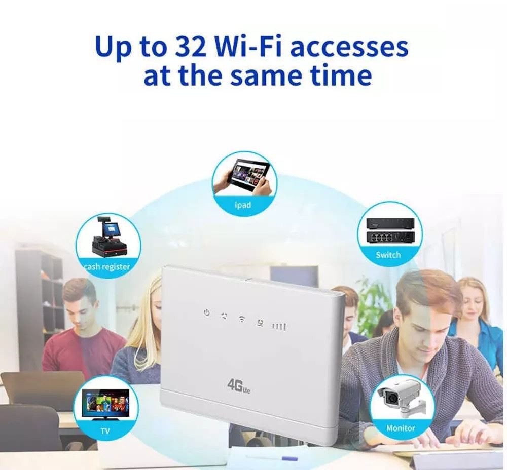 Dette er en svært avansert LTE innendørs CPE-ruter. Den er designet for å møte behovene for integrerte data og Wi-Fi-tilgang for privat-, bedrifts- og bedriftsbrukere. (kan kobles til SMA-kontakt eksterne antenner!) 150M høyhastighet, LTE FDD: DL/UL 150M/ 50 Mbps (Cat 4). Overfør 4G til Wi-Fi, trenger ikke bredbåndstilgang, sett inn et SIM-kort, plug and play. WiFi dekker hele leiligheten og huset, nyt høyhastighetsinternett overalt. Enkel å koble til, doble eksterne antenner, stor dekning og 32 brukere samtidig.