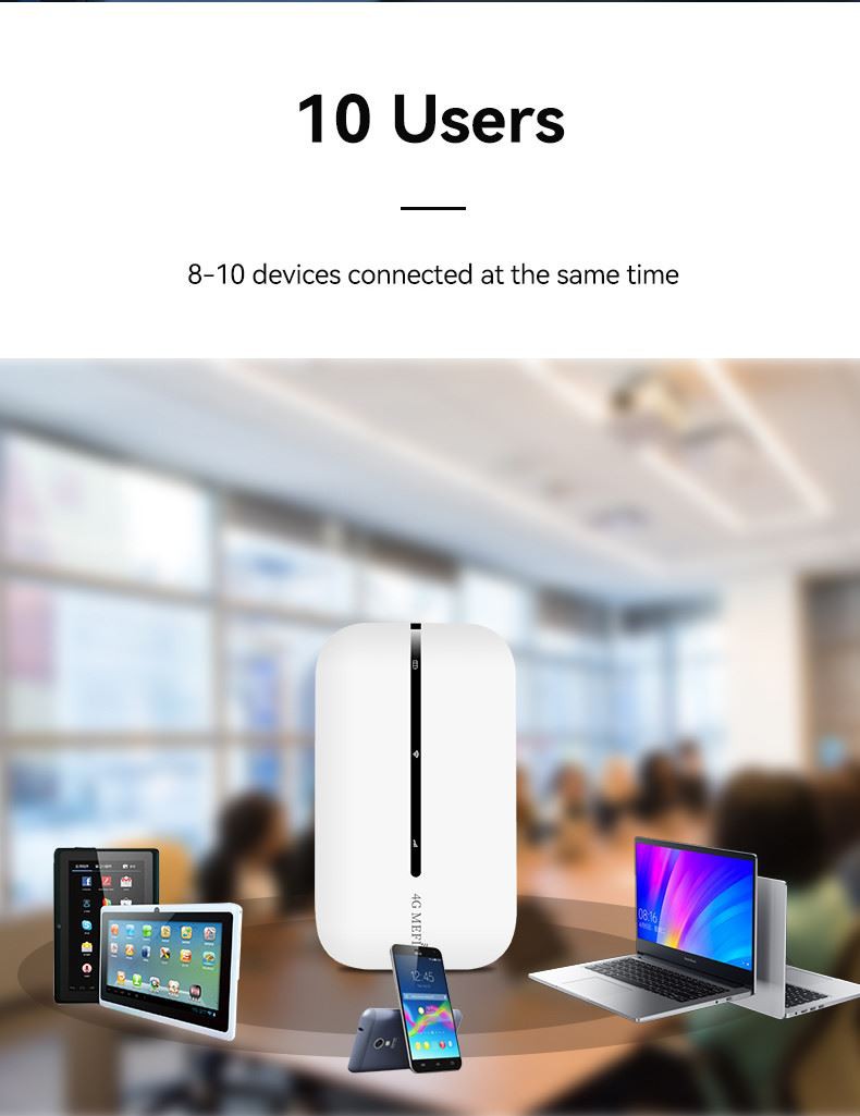 Del: Kobler til opptil 10 WiFi-aktiverte gadgets.